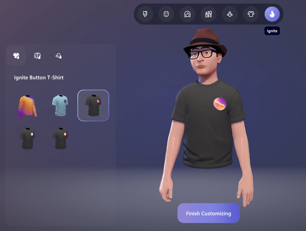 And there is also possibility to dress up your avatar with #MSIgnite clothing.