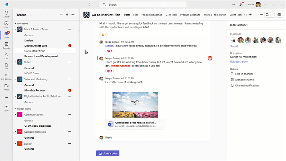 - Manage your teams and channels: Users can easily adjust the channels list in Teams to prioritize what is most important. When setting up a new collaboration space, users will be asked to create a channel, and when joining a new team users can select only the channels, they want to see in the channel list. When a channel is no longer active or relevant, a user can archive the channel, and it will be hidden and closed for further action, but the information can still be accessed. This update will be Generally Available in January 2024.