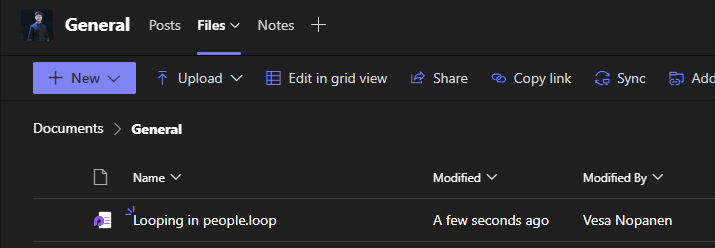 What is important, that now these Loop components are stored in the relevant team’s channel files.
