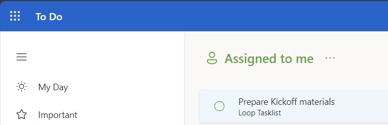 Tasks can be clicked done in any of these apps: To Do, Loop or Whiteboard and the information will synchronize automatically to all apps. In fact, every Loop Task component creates a planner board behind the scenes and To Do shows tasks from there.