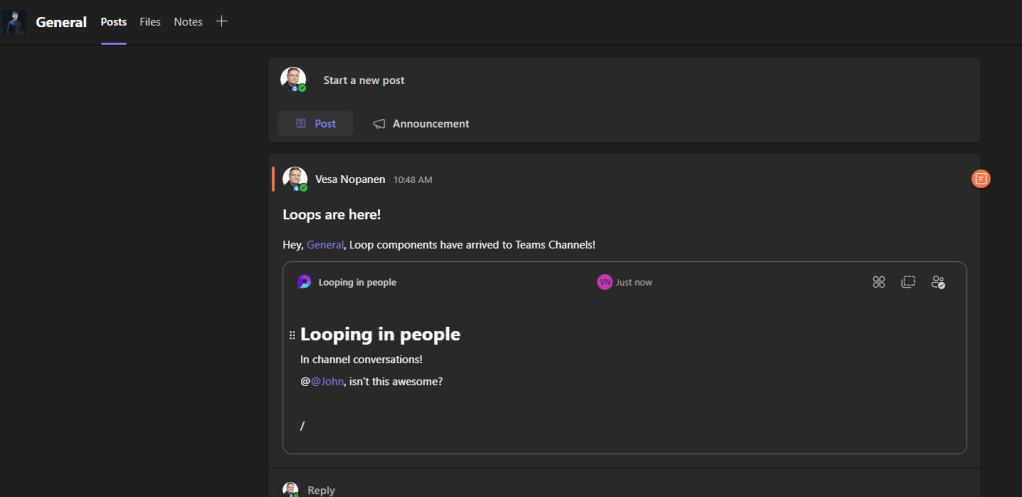 - Loop components in Microsoft Teams channels