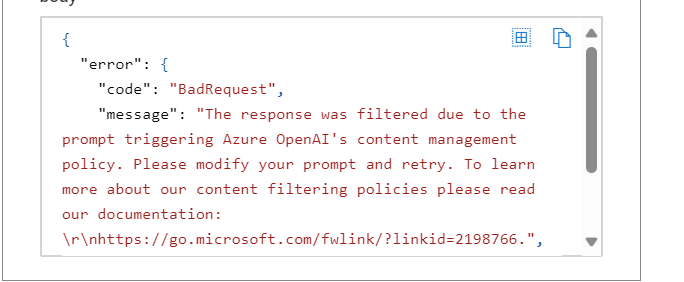 And in case the picture (or prompt) is against the acceptable, the call will fail and doesn’t return content filtering information.