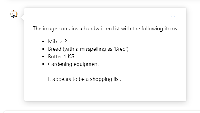 Of course, the prompt was also different, using the summarize / describe one in this blog post. And with further testing understanding handwritten Finnish was not as good as English is. So, there is still room for improvement.