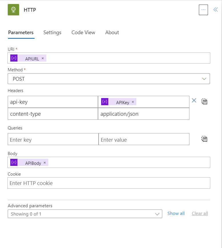 I have placed the REST API call body to a variable named APIBody. After that it is just an HTTP call to the model.