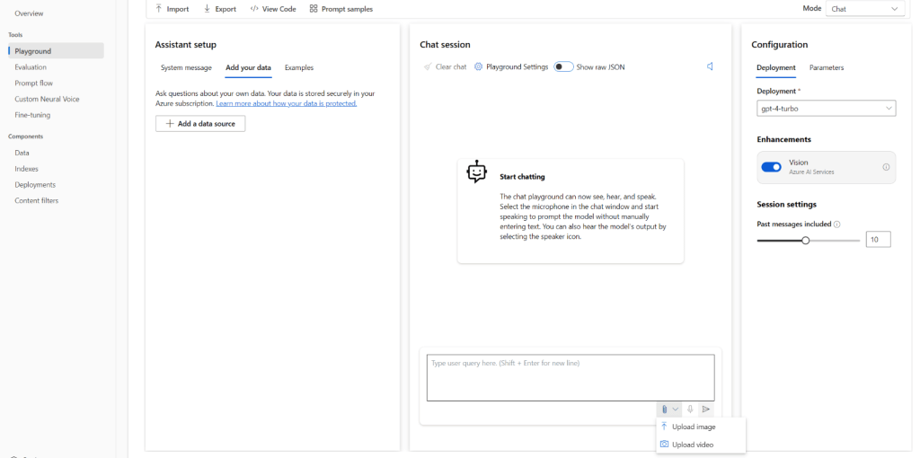 First, you need to go to AI Studio to create a deployment of GPT-4 model that is set to version vision-preview.