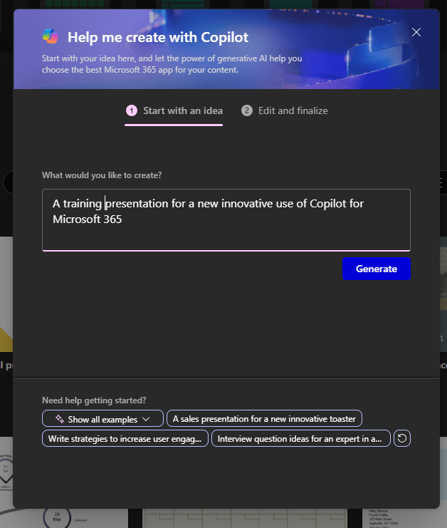 What has appeared already, is Help me create which does what the name says: helps you create a new content. You provide the idea and key information, and Copilot will create you a draft in the app that best matches your idea, for example a Word or PowerPoint. This is basically extending the Create section in Microsoft 365 portal.
