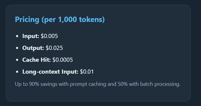 - Long-context input: $0.01 per 1,000 tokens