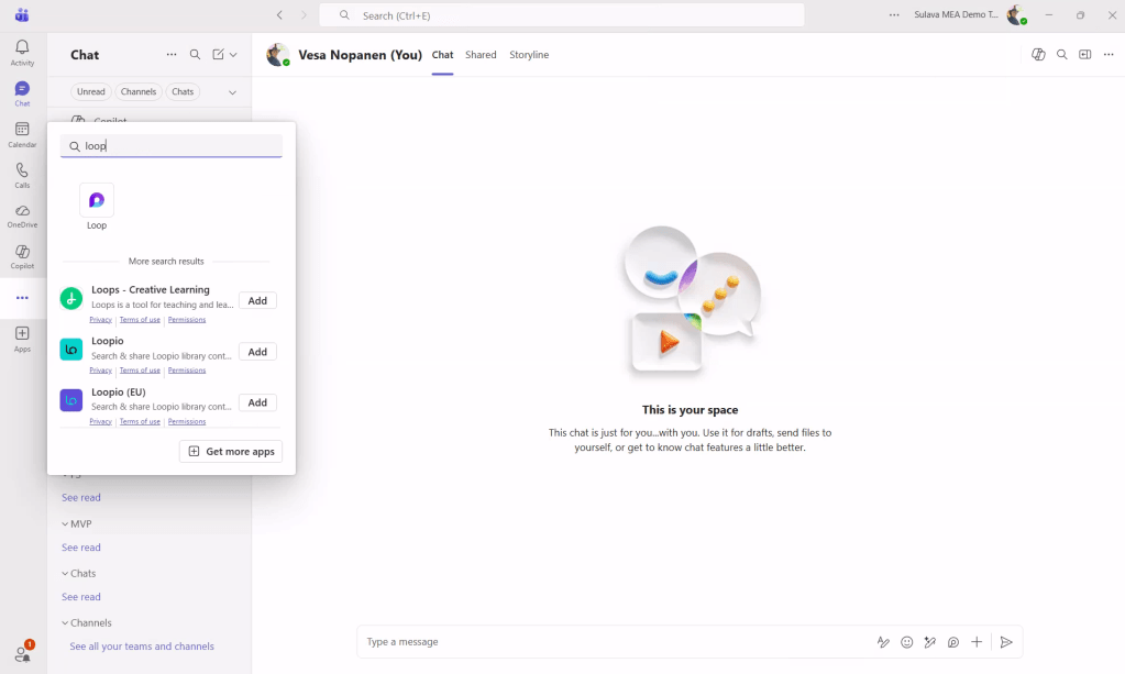 Did you know that you can open the Loop application inside Microsoft Teams? Just go to … dots and search for Microsoft Loop.