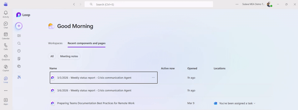 You can then open the Loop app inside Teams. This works for both web and desktop. And you can see the Loop then on the left rail.