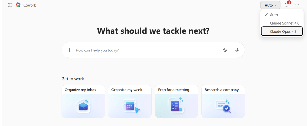 You will find Opus 4.7 in the model selector in Copilot Cowork and Copilot Studio, and in the near future in Copilot in Excel. This is exactly the kind of cutting-edge, enterprise-grade model choice that makes Microsoft 365 Copilot — and Copilot Cowork especially — so powerful for real work.