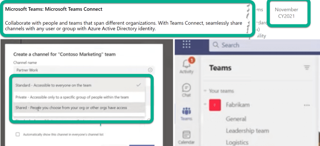 It is always good to take a look at the Microsoft Teams roadmap and see what is changing there since Microsoft Ignite 2021 #MSIgnite. Of course roadmap dates are not exact launch dates but they can give some idea when to expect those features. Shared Channels (Microsoft Teams Connect) is scheduled for June 2021! And … Continue reading Microsoft Teams Roadmap Watch: updates of Microsoft Ignite 2021